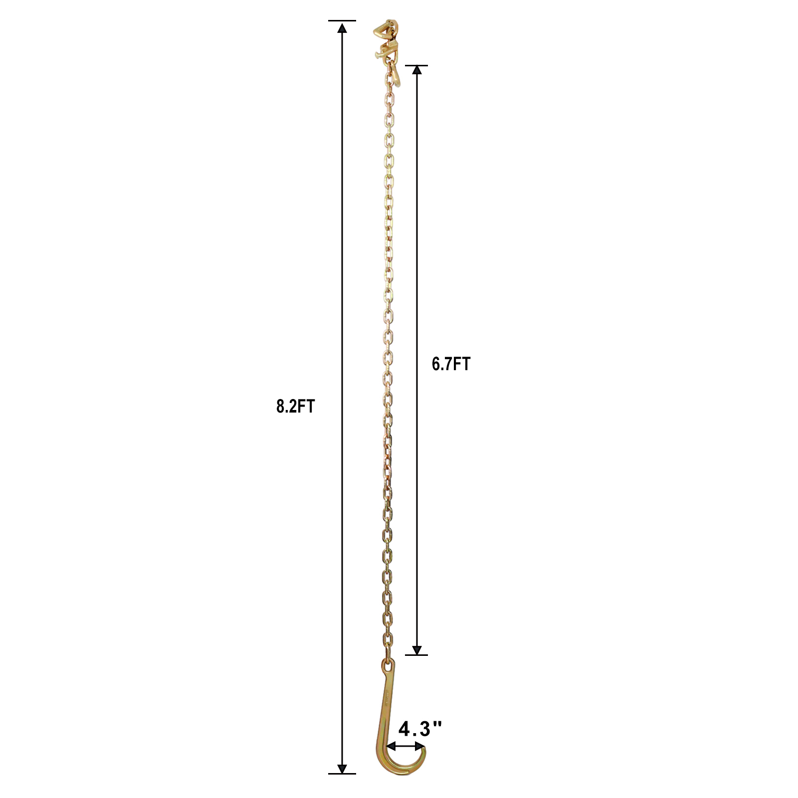 Product Name:5/16" x6' Leg G70 15" Long Shank J Hook Tow Chain w/RTJ Cluster Hook & Grab Hook - 4700 lbs WLL Heavy Duty Transport Truck Chain for Car Wrecker Recovery - Towing Equipment 2pcs