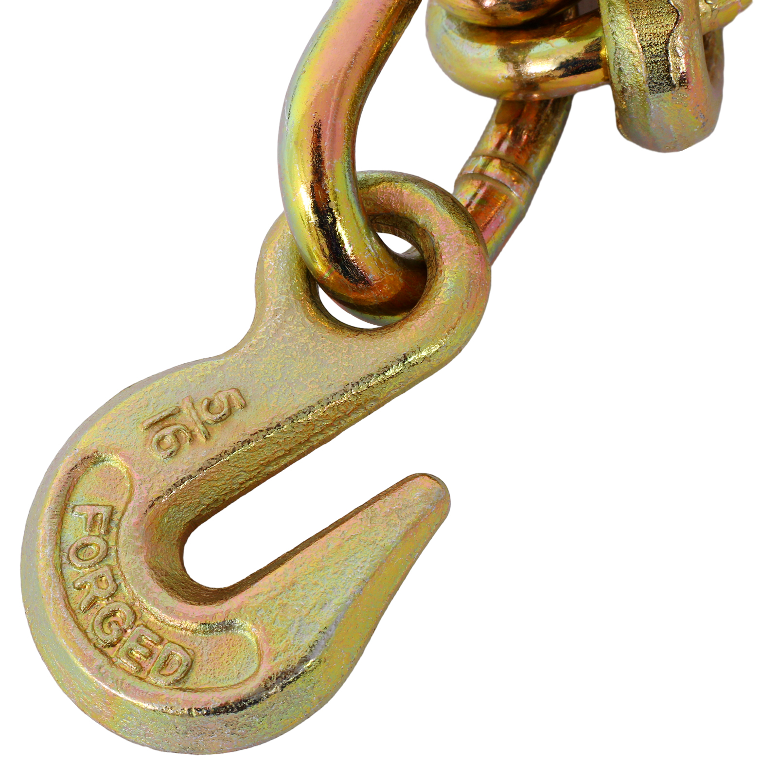 Adaptable Hook Configurations: Equipped with a 15" Long Shank towing J Hook, an RTJ Cluster Hook, and a Grab Hook, our chain offers versatile attachment options for various vehicle types and towing requirements, ensuring secure and reliable connections every time.