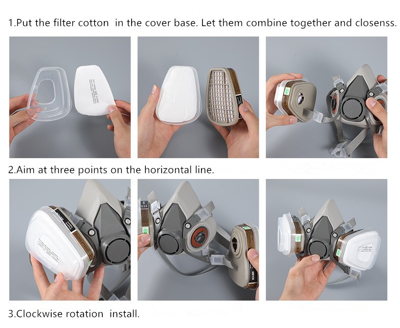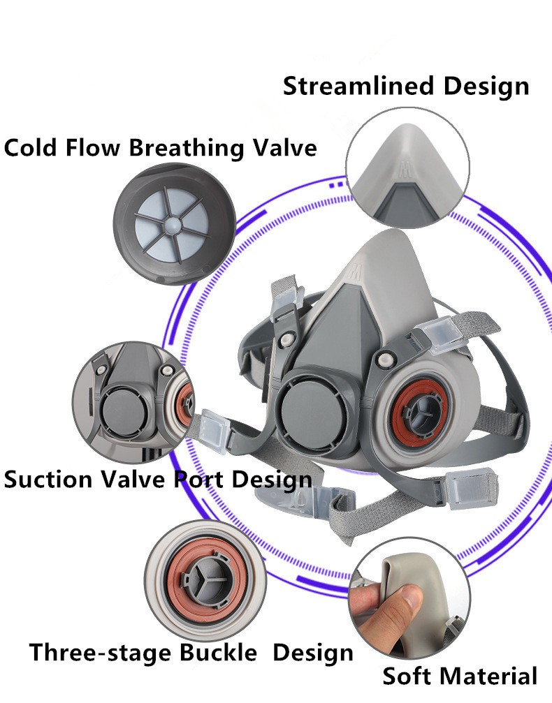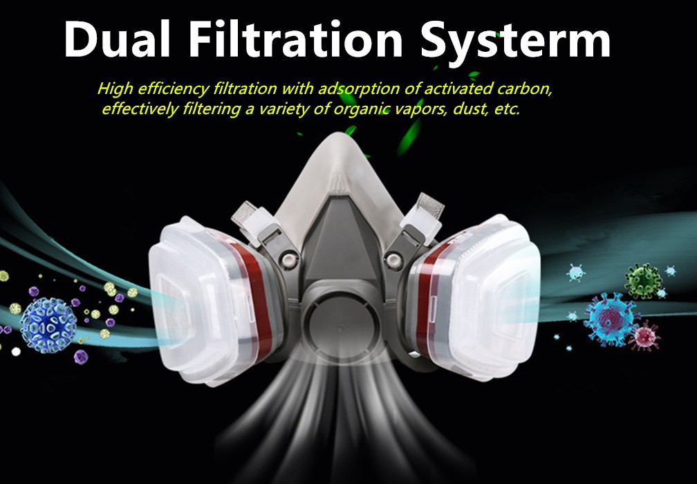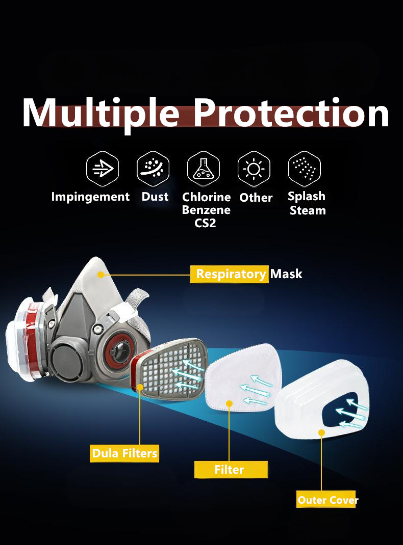 5. Double-cartridges mask with low breathing resistance, compact appearance, low profile design, easier to use with other labor protection products.