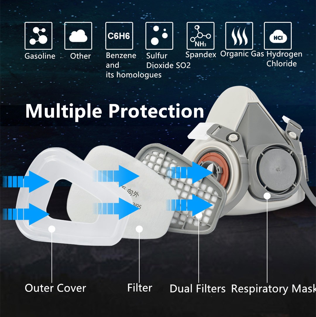 1. 15-In-1: 1 set includes a 6200 Half Face Mask, 2pcs 6001 filter cartridges, 10pcs 5N11 filter cotton, 2pcs 501 filter covers to meet your needs.