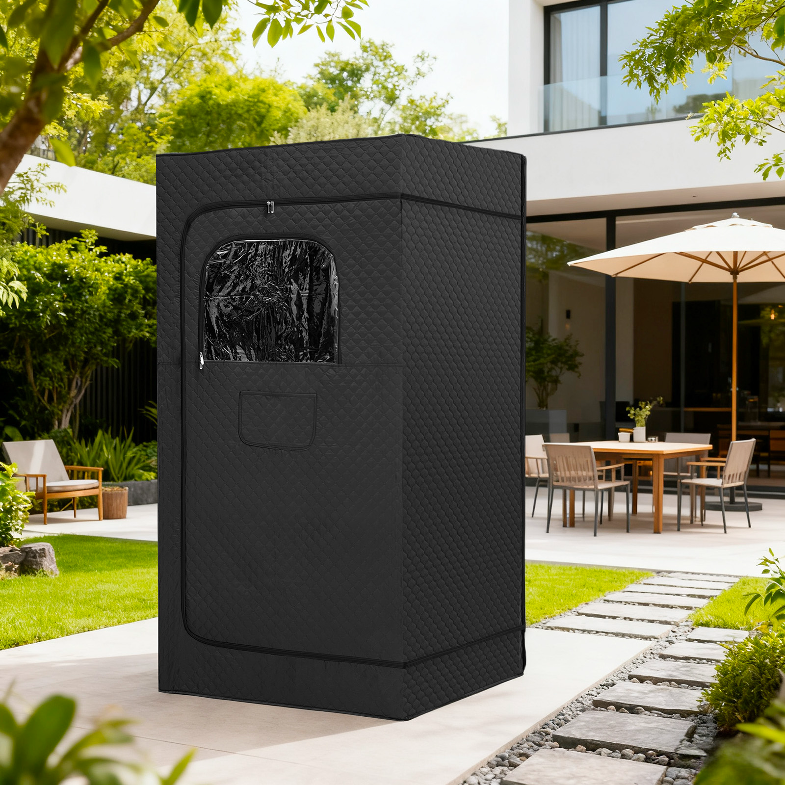 High-quality materials: The main body of the sauna room is made of thickened Oxford cloth and insulation cotton combined with a high-strength aluminum alloy frame. It has a stable structure and excellent sealing performance, effectively preventing heat loss and achieving energy conservation and insulation. The interior wall material is heat-resistant, easy to clean and maintain, ensuring long-term safety and hygiene