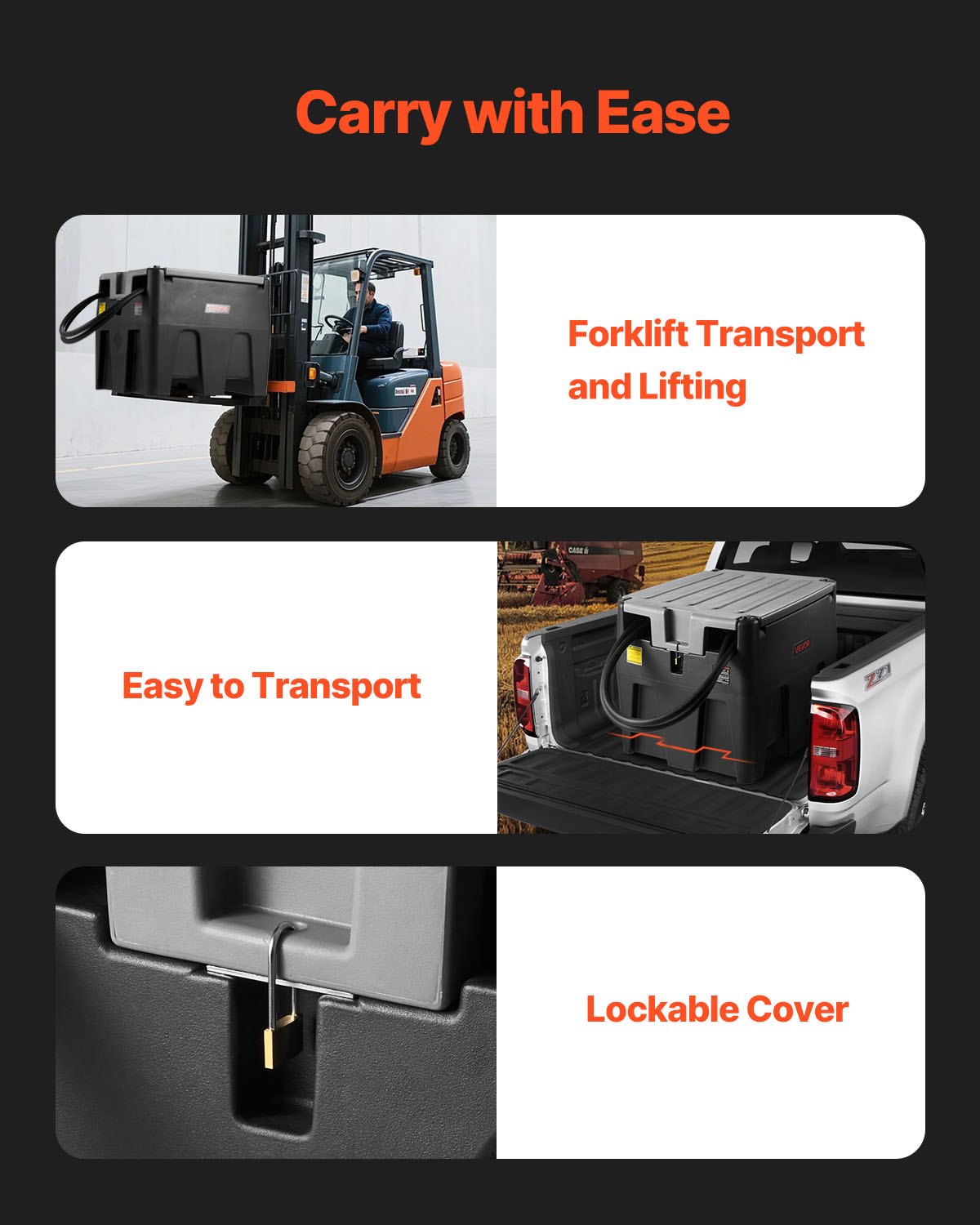 Portable Tank 58 Gal Fuel Tank With 12V Transfer 10 GPM Black